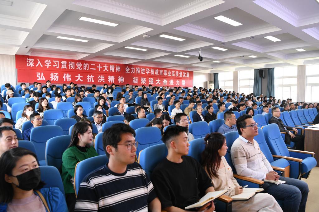 刘彪文指出,蒋金法教授的报告内容丰富、分析透彻、深入浅出,对我们准确把握党的二十大和主题教育精神,深入贯彻习近平总书记关于教育的重要论述提供了良好指导和遵循。他强调,教育要与国家事业的发展相适应、与人民群众的期待相契合、与国际地位相匹配,全校党员领导干部、教育工作者要坚持不懈用习近平新时代中国特色社会主义思想凝心铸魂,深入学习掌握中国式现代化的重要特征、精髓要义、实践要求,准确把握中国式现代化与学校思想政治教育的逻辑关系,聚焦立德树人根本任务,立足学校处于改革发展关键时期的实际,紧盯学校“三五十”战略目标,发挥教师主体作用、突出学生主体地位,全面提升学校思想政治教育工作质量和水平,奋力谱写学校高质量发展的精彩篇章。