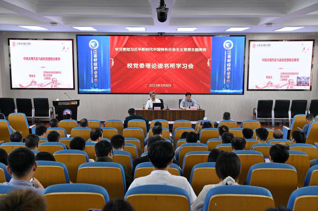 5月8日,beat365官网在综合楼7楼报告厅举办学习贯彻习近平新时代中国特色社会主义思想主题教育读书班专题辅导报告会,特邀财政部跨世纪学术带头人、江西省人大财政经济委员会委员、省社科院党组书记蒋金法教授作专题报告。报告会由校党委书记刘彪文主持。