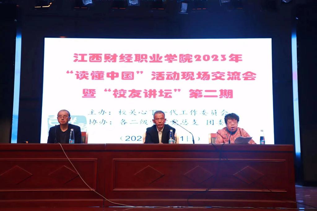 为向广大青年学生宣讲党的二十大精神,教育和激励学生在新的征程上立志做有理想、敢担当、能吃苦、肯奋斗的新时代青年,2023年5月11日下午4:30校关工委在英才交流中心举办了“老少共话二十大 踔厉奋斗新征程”为主题的2023年“读懂中国”活动现场交流会暨“校友论坛”第二期活动。两位优秀老校友代表原江西省九江第一中学副校长、77级财政班的柯于生和原国家税务总局鹰潭市税务局副调研员、全国税务系统先进工作者、全国五一巾帼标兵、81级税收班的艾华英在现场与beat365官网参加2023年“读懂中国”活动征文写作和微视频制作的青年学生进行了深入交流。