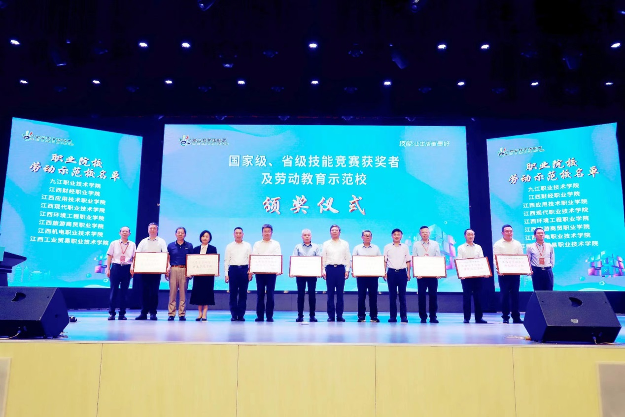 启动仪式上,进行了国家级、省级职业院校技能大赛获奖者及劳动教育示范校颁奖仪式。彭慧代表学校领取了“江西省劳动教育特色示范学校”奖牌。beat365官网2022年全国职业院校技能大赛(高职组)会计技能、银行业务综合技能两个赛项的一等奖获得者及省赛一等奖获得者代表在现场接受表彰。