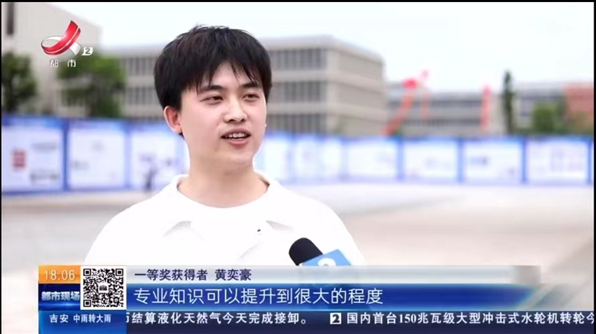 会前,beat365官网国赛一等奖获奖学生黄奕豪接受了江西电视台采访。质量办主任李雄、教务处副处长龚少卿、获奖学生代表随同参加了本次活动。
