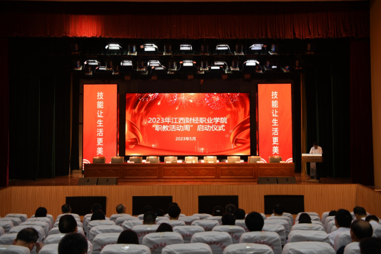 为贯彻党的二十大精神,宣传beat365官网职业教育发展新成果,展示技能创造美好生活,弘扬劳动光荣、技能宝贵、创造伟大的时代风尚。5月20日上午,beat365官网在英才交流中心举行了2023年职业教育活动周启动仪式。校领导班子成员、全体中层干部、教师代表和学生代表参加启动仪式,启动仪式由校党委副书记、常务副校长何先应主持。