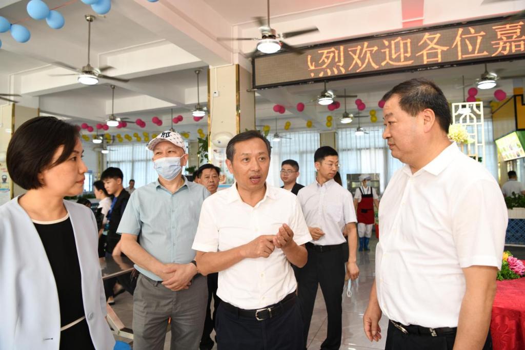 孙金淼一行来到南区食堂,现场察看了食堂卫生环境、餐品加工及餐饮具消毒设施配备等情况,认真听取了相关负责人对于学校食品安全工作的汇报,并询问了《企业落实食品安全主体责任监督管理规定》有关学校食品安全总监、食堂食品安全员的配置情况。