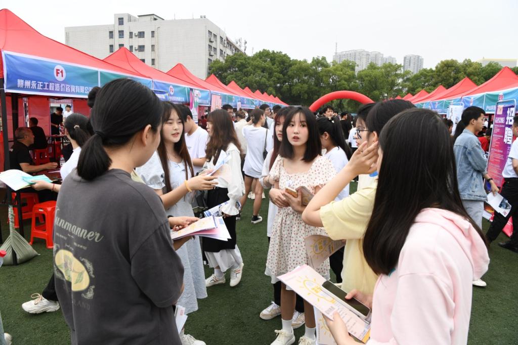 活动现场秩序井然,热闹非凡。毕业生们手拿简历,穿梭于各单位招聘咨询点前,结合自身优势和兴趣主动与用人单位深入交流,详细询问企业情况、岗位职责和福利待遇等相关信息。各用人单位主动向毕业生发放企业宣传资料,围绕毕业生所关心的岗位需求、薪资待遇、个人发展等问题进行细致解答,为企业选拔人才做好充足准备。招聘会现场还引来众多低年级学生,提前了解相关公司的实习就业信息,为接下来的职业规划和发展做准备。