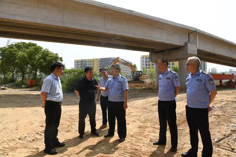 6月1日上午,九江市公安局交管支队党委副书记、副支队长杨方一行来到正在建设的八里湖新校区调研,针对新校区建设和安全管理等有关事项进行现场办公。学校党委书记刘彪文、八里湖新区住建城管局局长樊金龙及学校校园建设管理处、安全保卫处、学生工作处等部门负责人陪同。