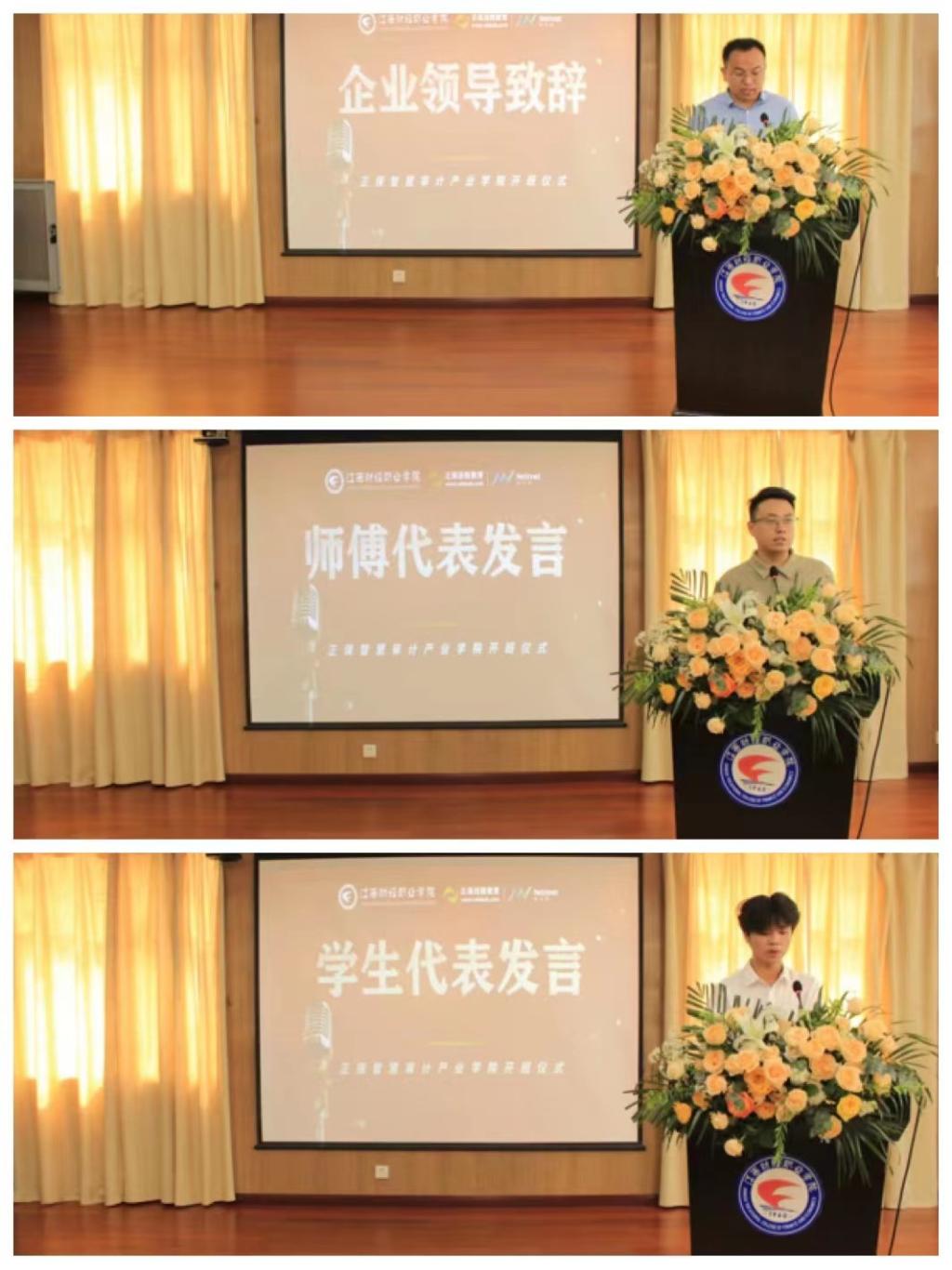 进一步推进职业教育实用高效发展,提升职业教育服务经济发展的能力,根据产教融合、校企合作、不断推进校企命运共同体建设的实践需求,经过前期调研、协商、筹备等大量准备工作,6月1日,正保智慧审计产业学院开班仪式在培训中心二楼会议室隆重举行。校党委书记刘彪文,党委委员、副校长邱家明,会计学院院长万凯,会计学院党总支书记张家顺,正保远程教育厦门网中网软件有限公司大区总经理杨凤坤等为校企合作出巨大努力的学院、企业领导和老师们出席本次活动。