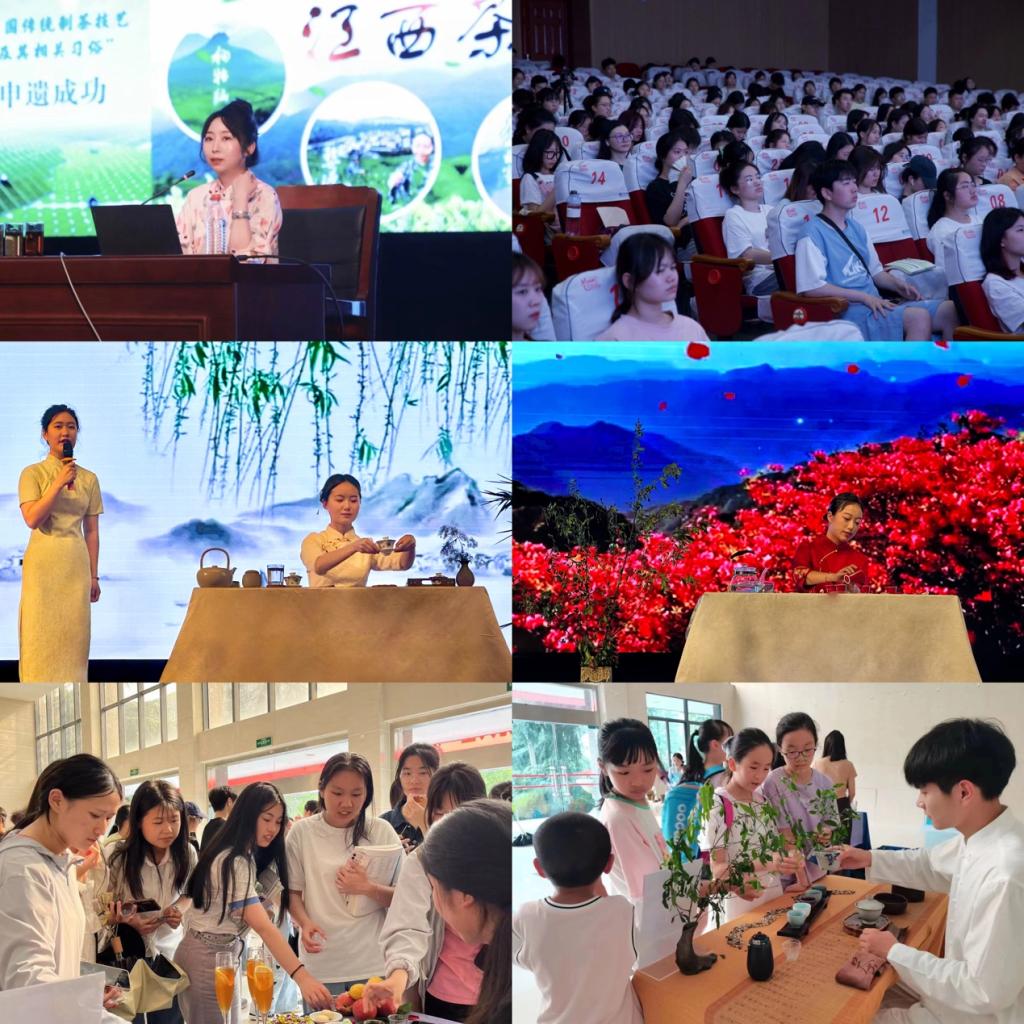 本次活动内容丰富,形式多样。活动由石莹老师的主题讲座《走进中国茶》、有奖猜茶开场;第二部分是张颖老师指导的《茶觉春江水》《映山红》茶艺表演。12位茶艺师分别为茶友冲泡了庐山云雾茶、君山银针、凤凰单丛、大红袍、修水宁红茶等基本茶类和菊花普洱茶、“暴打柠檬”等各色茶调饮,为现场师生带来了一场视觉、听觉、味觉上的多重享受,使大家亲身感受到了茶饮文化的多元表现形式和丰富的内涵。师生们共同体验茶叶的冲泡流程,品茗交流,分享不一样的心情。