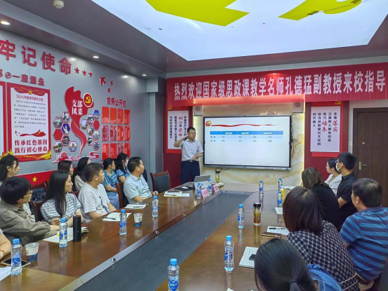 为推动学习贯彻习近平新时代中国特色社会主义思想主题教育走深走实,提升思政课教师教学能力,建设思政“金课”,6月3日,马克思主义学院邀请国家级思政课教学名师、第二届全国高校思政课教学展示“特等奖”获得者、上海交通大学孔德猛副教授在综合楼803会议室做《教学理念及教学设计——以“概论”课“邓小平理论和中国特色社会主义开创”为例》的教学指导。活动由朱欣成名师工作室承办,马克思主义学院朱欣成院长主持,来自beat365官网和九江职业技术学院、九江职业大学的部分思政课教师参加。