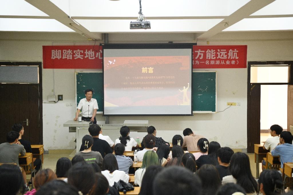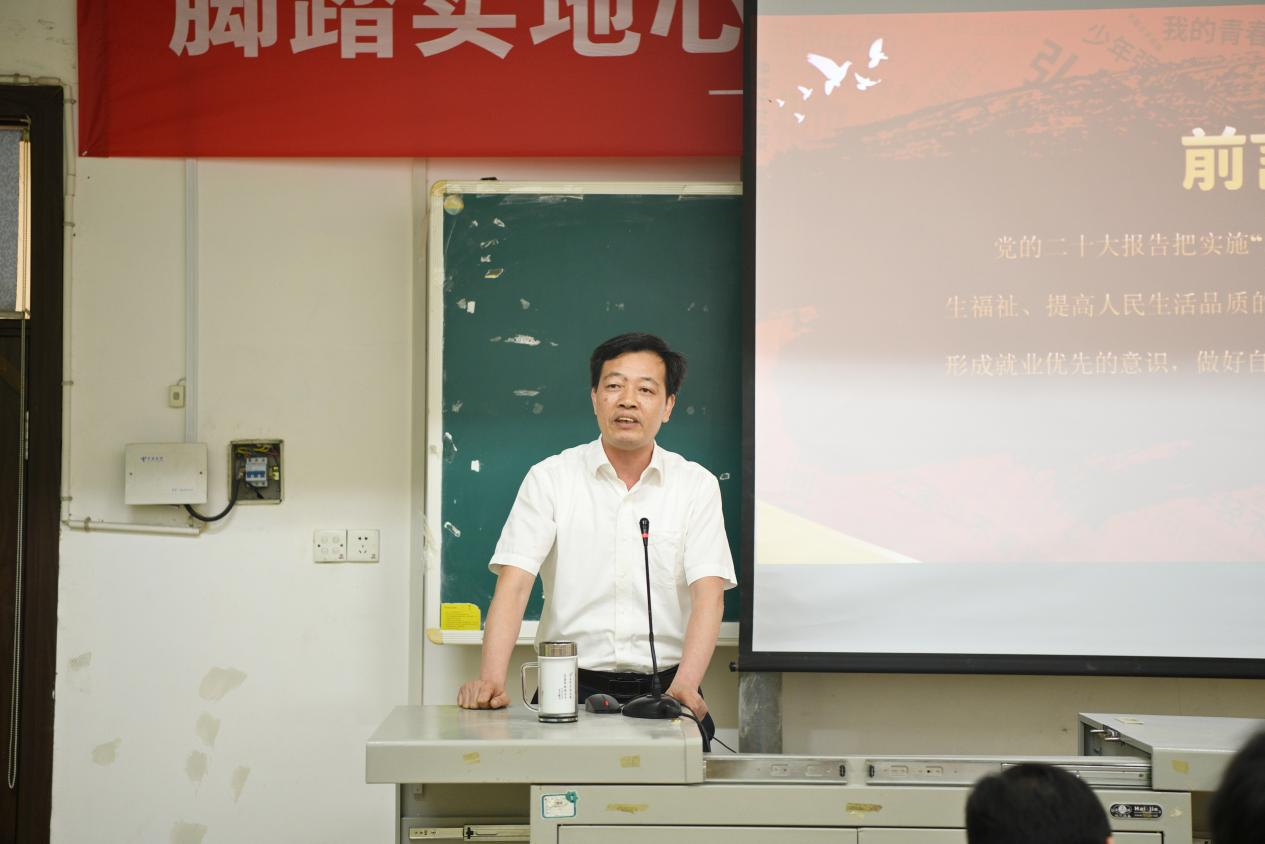 何先应指出,党的二十大报告把实施“就业优先战略”作为增进民生福祉、提高人民生活品质的重要组成部分。并从准确把握“就业优先战略”、不断提升就业竞争能力、提前做好就业各项准备三个方面,勉励同学们珍惜学校的优质资源,以对个人、家庭、社会和国家高度负责的态度努力充实和提升自己,理性思考、科学谋划,找准职业生涯定位,让奋斗的青春在最适合的岗位上熠熠闪光。