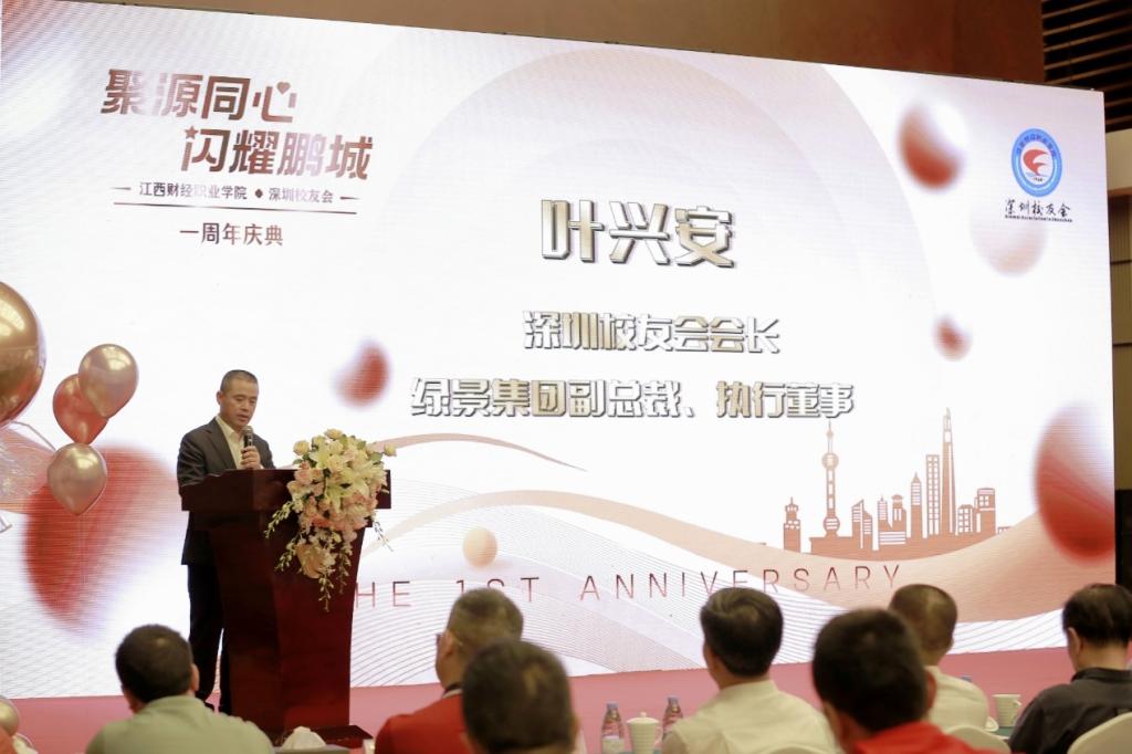 最后,刘彪文借用深圳校友会会长叶兴安的名字寓意,表示他对深圳校友会的期望。
