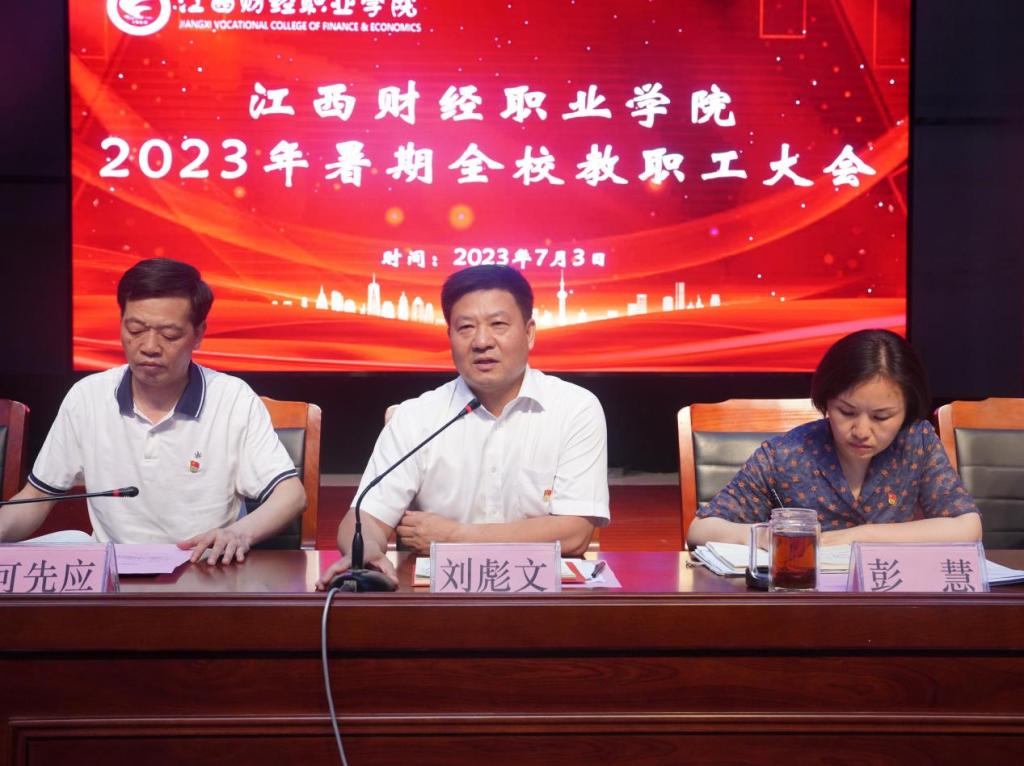 7月3日上午,beat365官网在英才交流中心召开全体教职工大会。党委书记刘彪文,党委副书记、校长彭慧及全体在家校领导班子成员出席,全体教职员工参加大会,南昌校区视频参会。会议由党委副书记、常务副校长何先应主持。