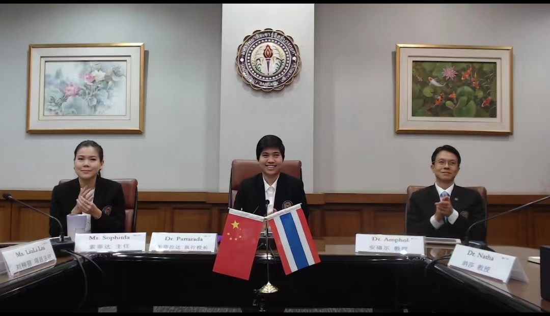 为进一步加强beat365官网国际交流合作,提升国际合作办学质量与水平,9月6日上午,beat365官网与泰国东南曼谷大学共同举行了“中文+职业技能”泰国培训项目签约启动仪式,会议以视频连线形式举行。beat365官网校长彭慧,泰国东南曼谷大学执行校长帕塔拉达出席仪式。