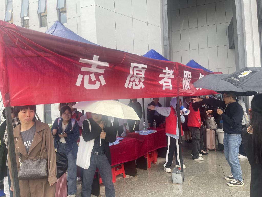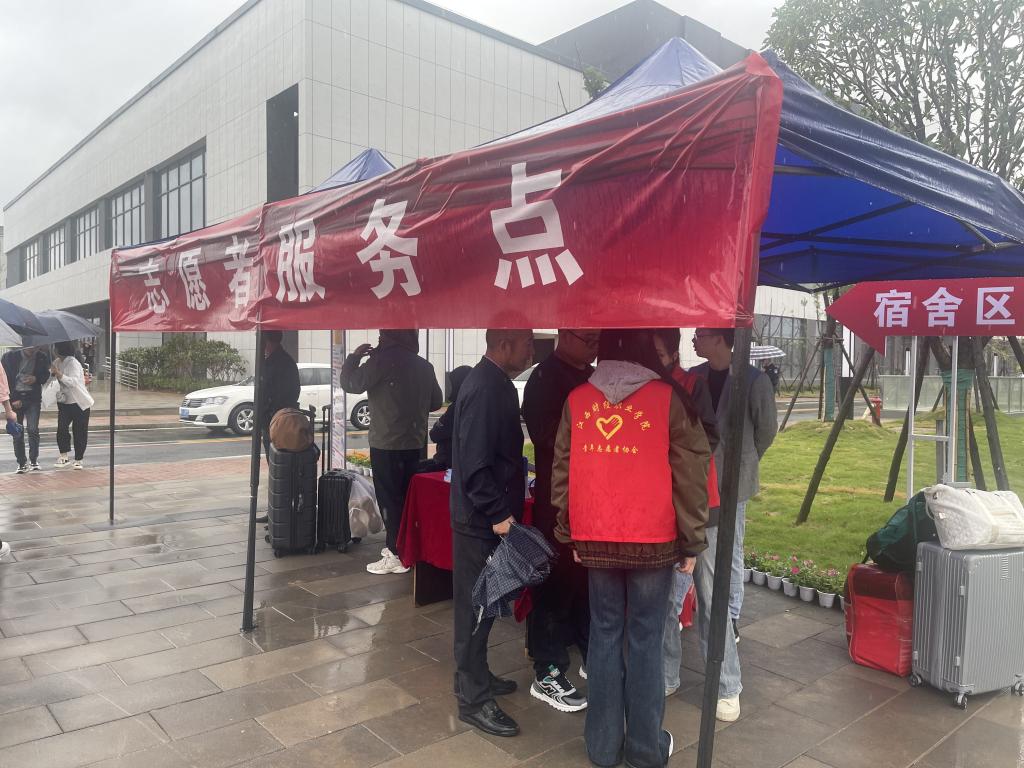 虽然气温骤降、天降小雨,志愿者们依旧热情不减。他们接过背包和行囊,默默守候在每一个迎新接待点上,用细致的服务为新生搭建了一条温暖的迎新绿色通道,用行动深刻地诠释了“奉献、友爱、互助、进步”的志愿精神。