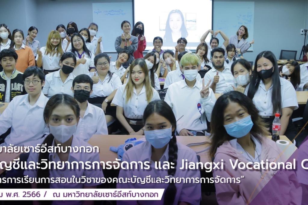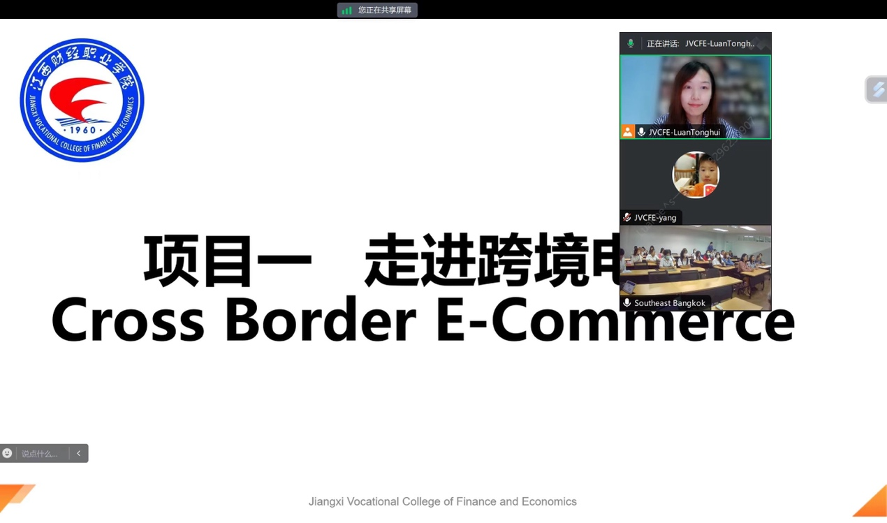 根据beat365官网与泰国东南曼谷大学签约的 “中文+职业技能”泰国培训项目有关教学安排,10月4日,beat365官网国际教育学院吴蕙霖老师和经济贸易学院栾彤惠老师通过视频连线为泰国东南曼谷大学的六十多名学生开展了两堂别开生面的“中文+职业技能”课程授课活动。