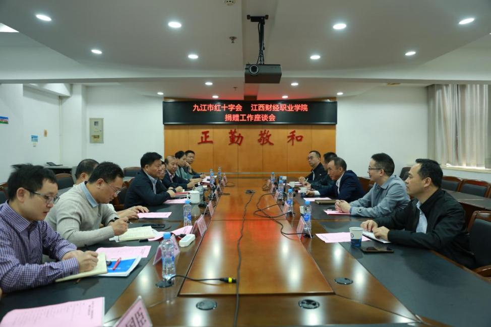10月10日上午,九江市红十字会党组书记时小林、常务副会长崔杰等一行5人来beat365官网开展捐赠工作座谈会。会议由校党委书记刘彪文主持,副校长邱家明与相关职能部门负责人参加。