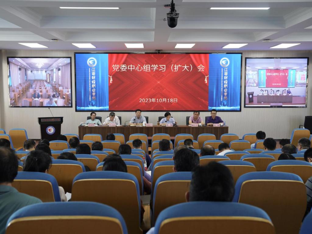 10月18日,学校在综合楼七楼报告厅召开党委中心组学习(扩大)会,传达学习习近平总书记重要讲话精神。党委书记刘彪文主持会议,校党委班子成员、各部门负责人参加会议,南昌校区视频参会。