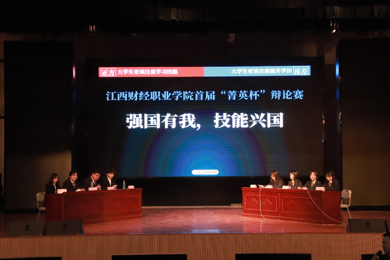 经校学生会初赛选拔,共有四支优秀代表队闯入决赛。决赛以“强国有我 技能兴国”为主题,分别围绕“大学生更应该注重学习技能还是提升学历”“年轻人的价值更多体现在结果上还是过程上”和“互联网对于大学生而言利大于弊还是弊大于利”展开了三场精彩对战。