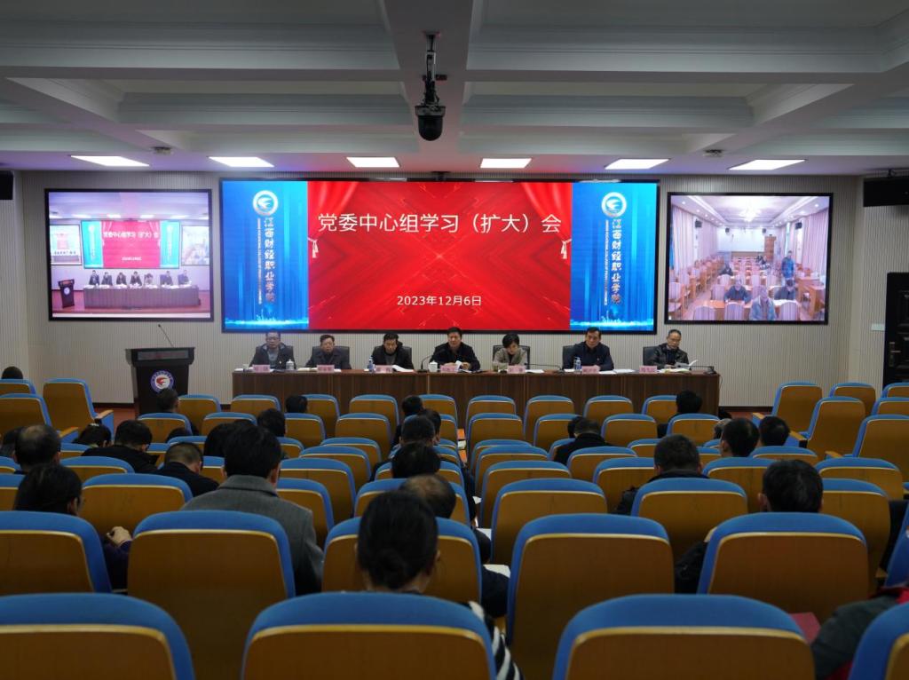 12月6日,学校在综合楼七楼报告厅召开党委中心组学习(扩大)会,传达学习习近平总书记重要讲话精神并开展学习研讨。党委书记刘彪文主持会议,九江职业大学党委委员、宣传部部长谢枫列席旁听,学校校领导班子成员、各部门负责人参加会议,南昌校区视频参会。