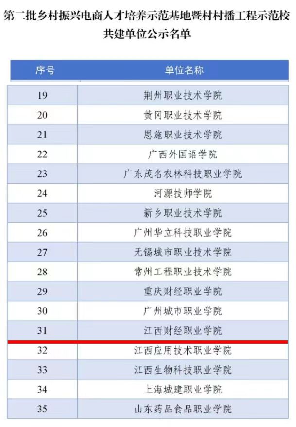 近日,农业农村部中国农业电影电视中心、全国乡村振兴产教融合联盟联合发布了《关于公布第二批乡村振兴电商人才培养示范基地暨村村播工程示范校共建单位的通知》。beat365官网经济贸易学院牵头、工商管理学院等二级学院联合申报的赣北乡村振兴电子商务培训基地项目成功获批立项。本次项目共吸引了国内100多家单位申报,最终35家单位获立项,包括2所本科、24所高职、6所中职、1家公司以及2个研究机构。