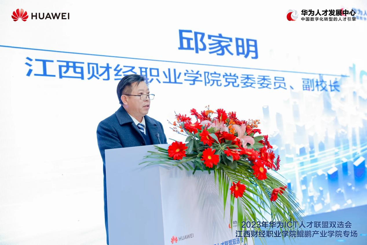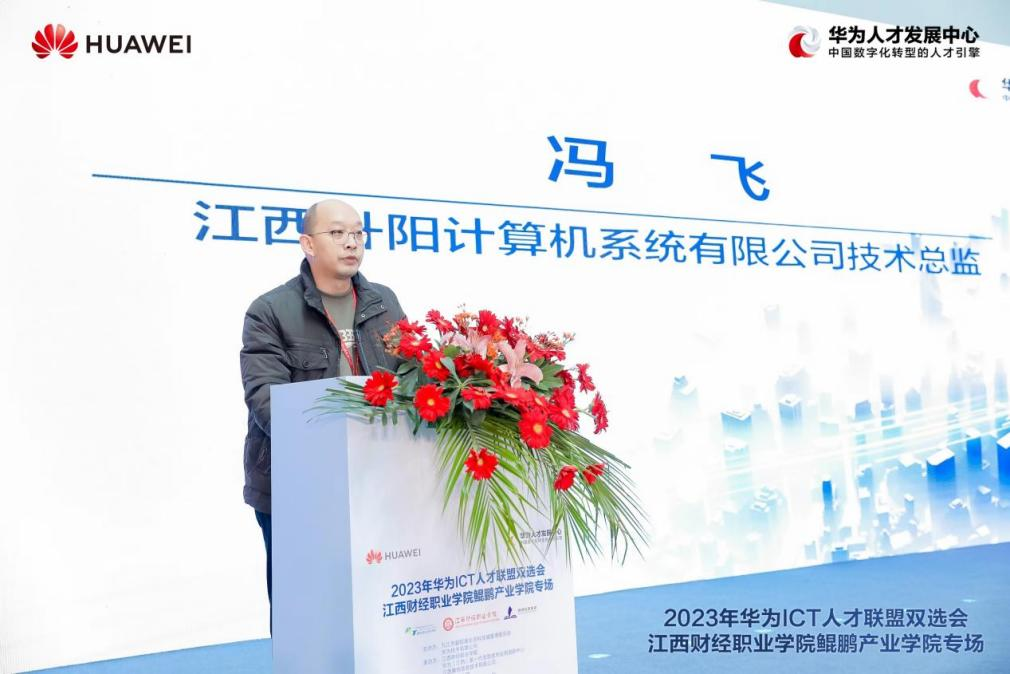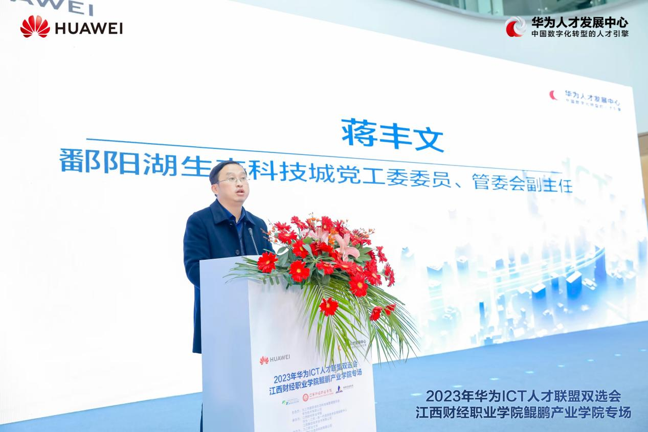 2023年12月27日下午2点,“2023年华为ICT人才联盟双选会”——beat365正版唯一入口必一鲲鹏产业学院专场,在鄱阳湖生态科技城科创中心盛大举行。本次双选会由鄱阳湖生态科技城管理委员会、华为技术有限公司主办,beat365正版唯一入口必一信息工程学院(鲲鹏产业学院)、华为(江西)新一代信息技术应用创新中心、江西赛创信息技术有限公司承办,鄱阳湖生态科技城党工委委员、管委会副主任蒋丰文,校党委委员、副校长邱家明,信息工程学院院长易文泉,党总支书记韦应珠,校招生就业处副处长赵凯,华为技术有限公司江西政企九景业务部总经理常刘科、江西升阳计算机系统有限公司技术总监冯飞出席了本次活动。