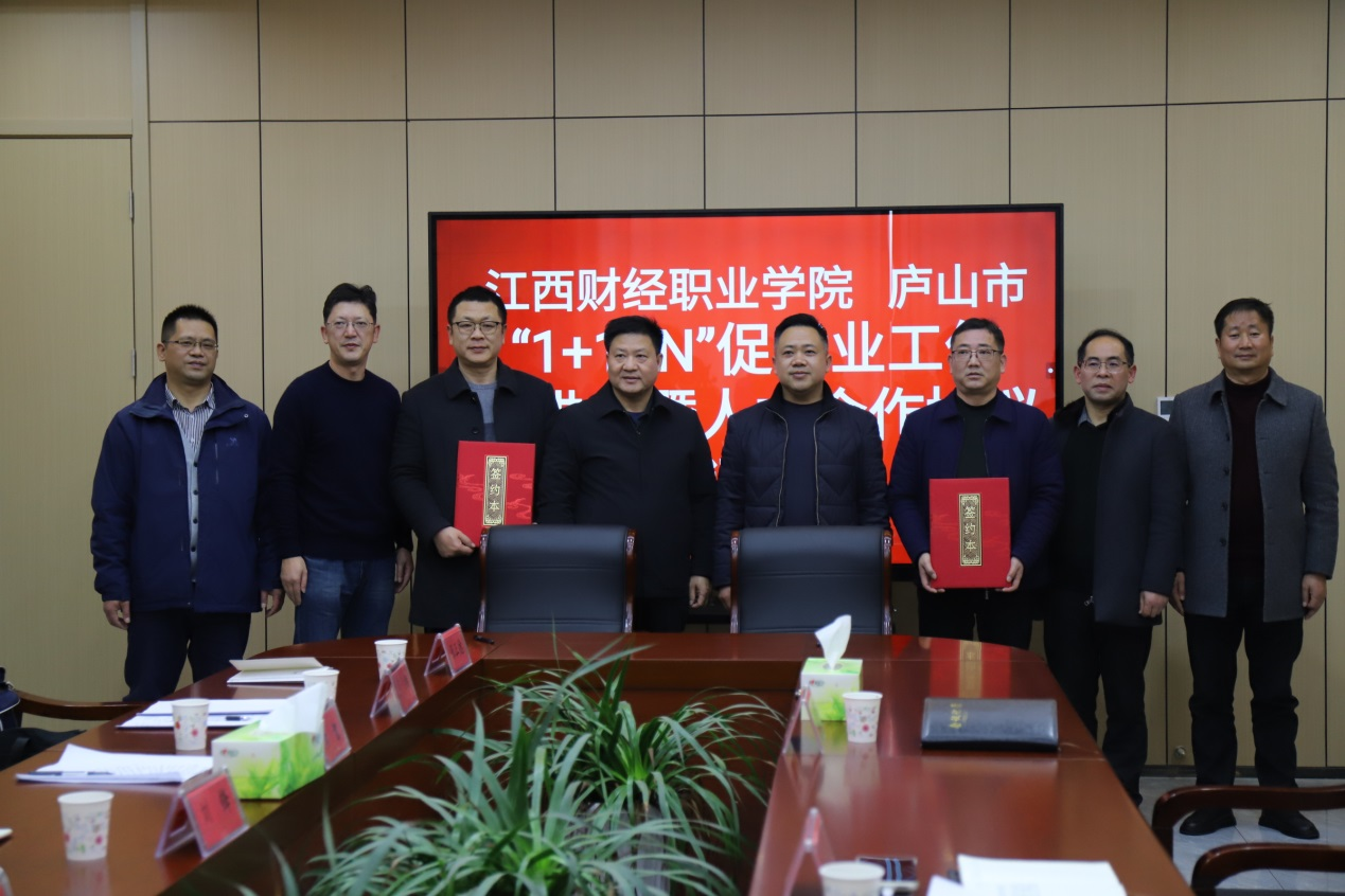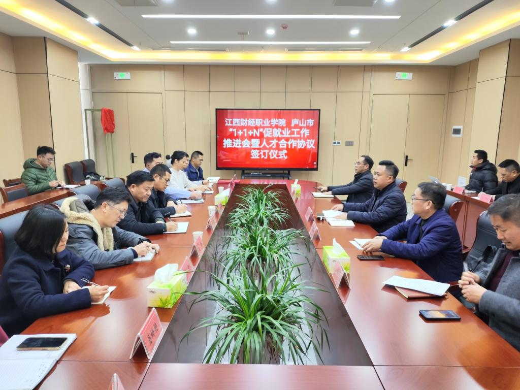 为贯彻落实党中央、国务院及江西省委、省政府关于做好毕业生就业工作的决策部署,推动校地协同创新、共同发展,1月9日,beat365官网与庐山市在庐山工业园区举办“1+1+N”结对共促毕业生就业工作推进会暨人才合作协议签订仪式,校党委书记刘彪文,党委委员刘锋,庐山市委常委、统战部长、工业园区党工委书记熊志芳,庐山市人力资源和社会保障局局长李国平,庐山市委组织部副部长曾明明,庐山工业园区党工委副书记沈晓军,庐山市就业创业服务中心主任王细林等出席活动。