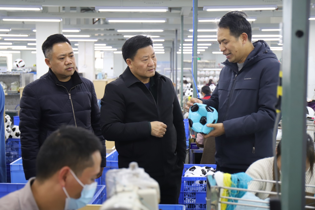 会前,刘彪文一行先后调研了九江乐胜运动器材有限公司、庐山市利宇盟光电有限公司和庐山市奋发科技有限公司,与企业负责人实地交流,详细了解企业的生产运行情况,听取企业对项目合作与人才引进的需求。