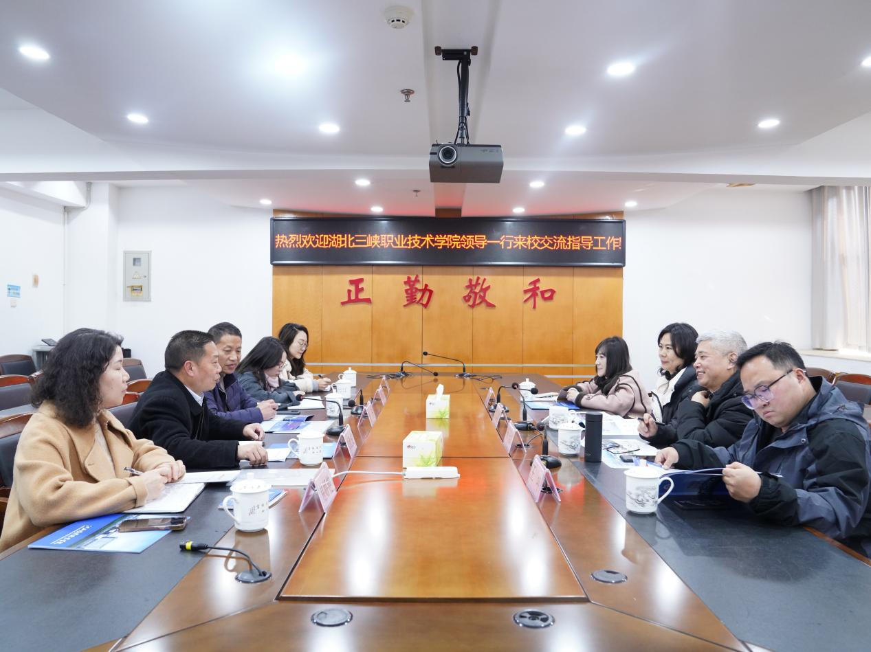1月10日,湖北三峡职业技术学院党委委员、宣传部部长黄昌英一行四人来beat365官网考察交流,校党委书记刘彪文热情接待了黄昌英一行,双方就加强宣传思想和大思政课建设进行研讨交流。