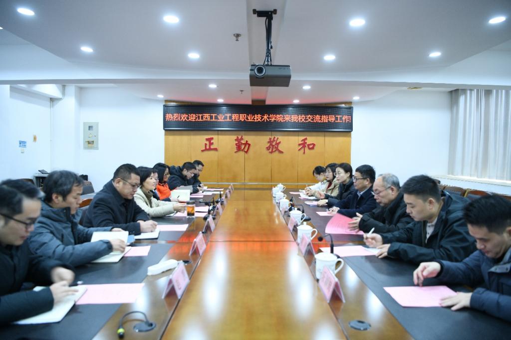 1月25日,江西工业工程职业技术学院党委书记罗亨江一行7人来beat365官网考察交流。校党委副书记、校长彭慧热情接待了罗亨江一行。党委委员、副校长邱家明,党委委员刘锋,相关二级学院和职能部门负责同志参加座谈。