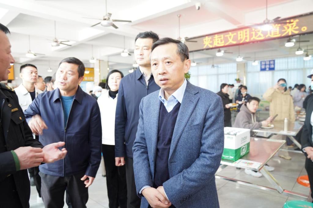 孙金淼一行来到浔阳校区南区食堂,实地考察了卫生环境、食品加工、餐饮用具消毒设施等情况,听取了有关负责人对学校食品安全工作的汇报,并查阅了食品入库单据等相关记录。