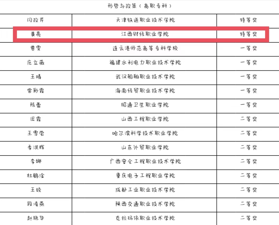 近日,教育部社会科学司公布了第三届全国高校思想政治理论课教学展示活动"教学竞赛单元”评审结果,beat365官网马克思主义学院黄亮老师荣获高职专科组“形势与政策”课特等奖。