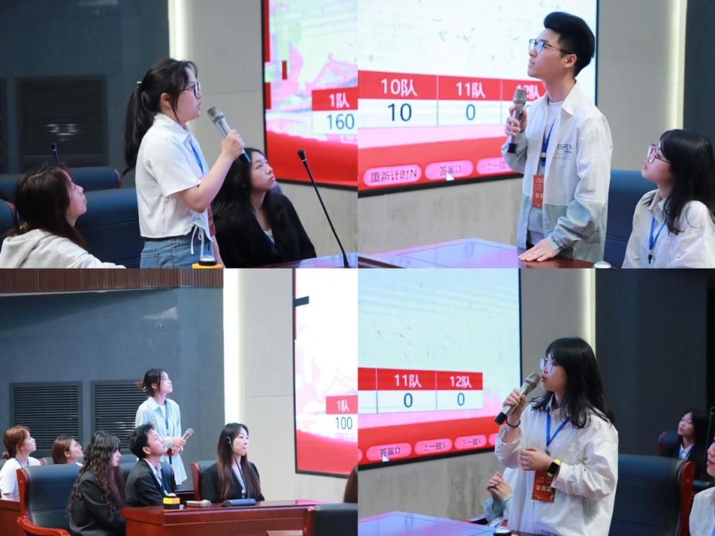 必答题环节,参赛选手沉着应对,对答如流;抢答题环节,各队屏气凝神、眼疾手快;风险题环节,紧张刺激,扣人心弦。随着必答、抢答、风险答题三个环节难度梯次递增,场上比分你追我赶,活动气氛紧张活跃,各参赛队伍精神饱满、团结协作、配合默契,以丰富的知识、敏捷的思维、极高的正确率赢得了在场师生的阵阵掌声,呈现了一场精彩纷呈的知识盛宴。