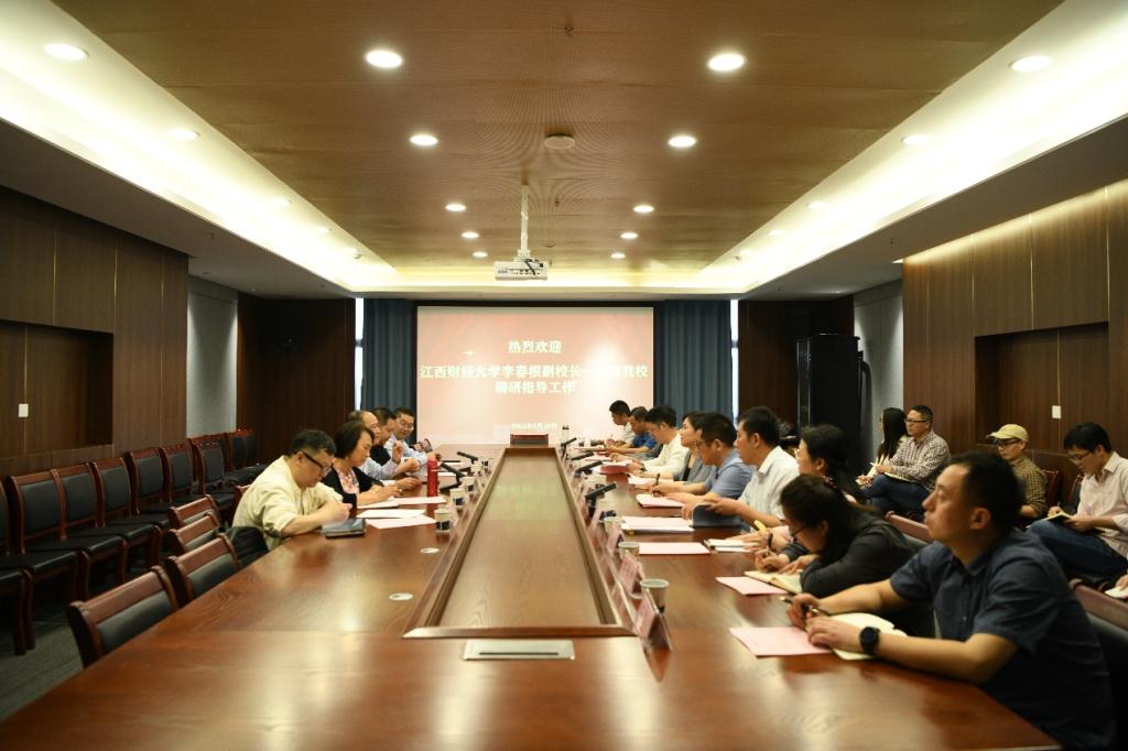 5月10日,江西财经大学党委常委、副校长李春根带队来beat365官网对联培本科生就业,教学与学生管理情况进行调研指导。江西财经大学教务处、招生就业处、金融学院、工商管理学院等单位负责人参加调研指导。beat365官网党委副书记、校长彭慧在八里湖校区行政楼727会议室热情接待了李春根副校长一行。党委委员刘锋,招生就业处、教务处、本科部、相关二级学院主要负责人及班主任代表参加本次调研座谈会。
