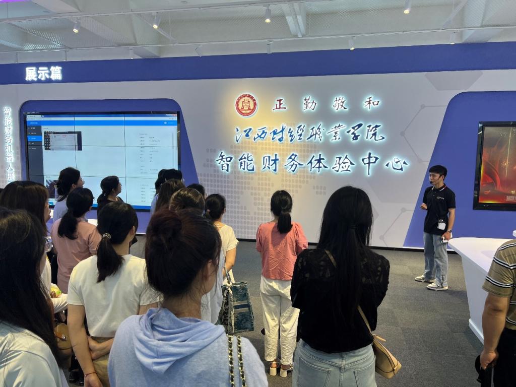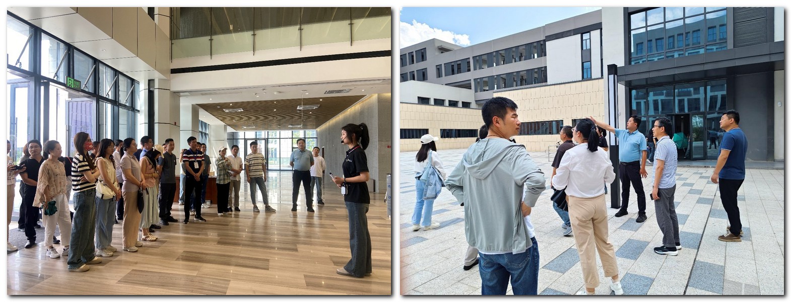 “国培”班一行参观了学校图书馆、教学楼、智能财务体验中心等场所,文化旅游学院旅游管理专业学生郑杨栊、陈绮丽两位同学为到访人员详细介绍了八里湖校区整体设计,建筑布局、校训内涵等情况。