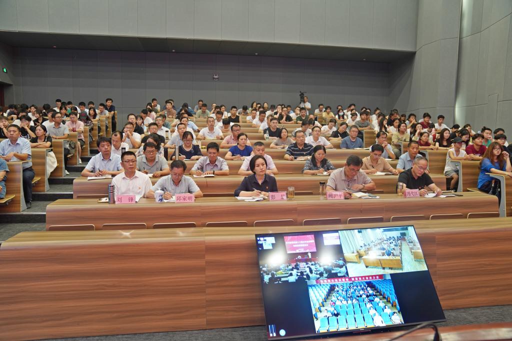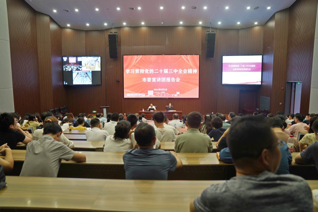 9月3日下午,学习贯彻党的二十届三中全会精神九江市委宣讲团报告会在beat365官网举行。九江市委宣讲团成员、九江市委副秘书长、社会工作部部长、“两新”党工委书记张小军作宣讲报告。beat365官网党委副书记、校长彭慧主持报告会。校领导班子成员、中层以上干部、教师党员和学生代表300余人聆听了报告,浔阳校区、南昌校区视频参会。