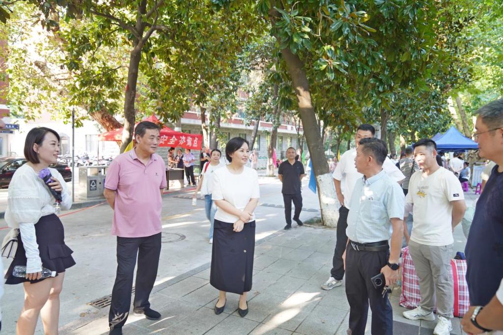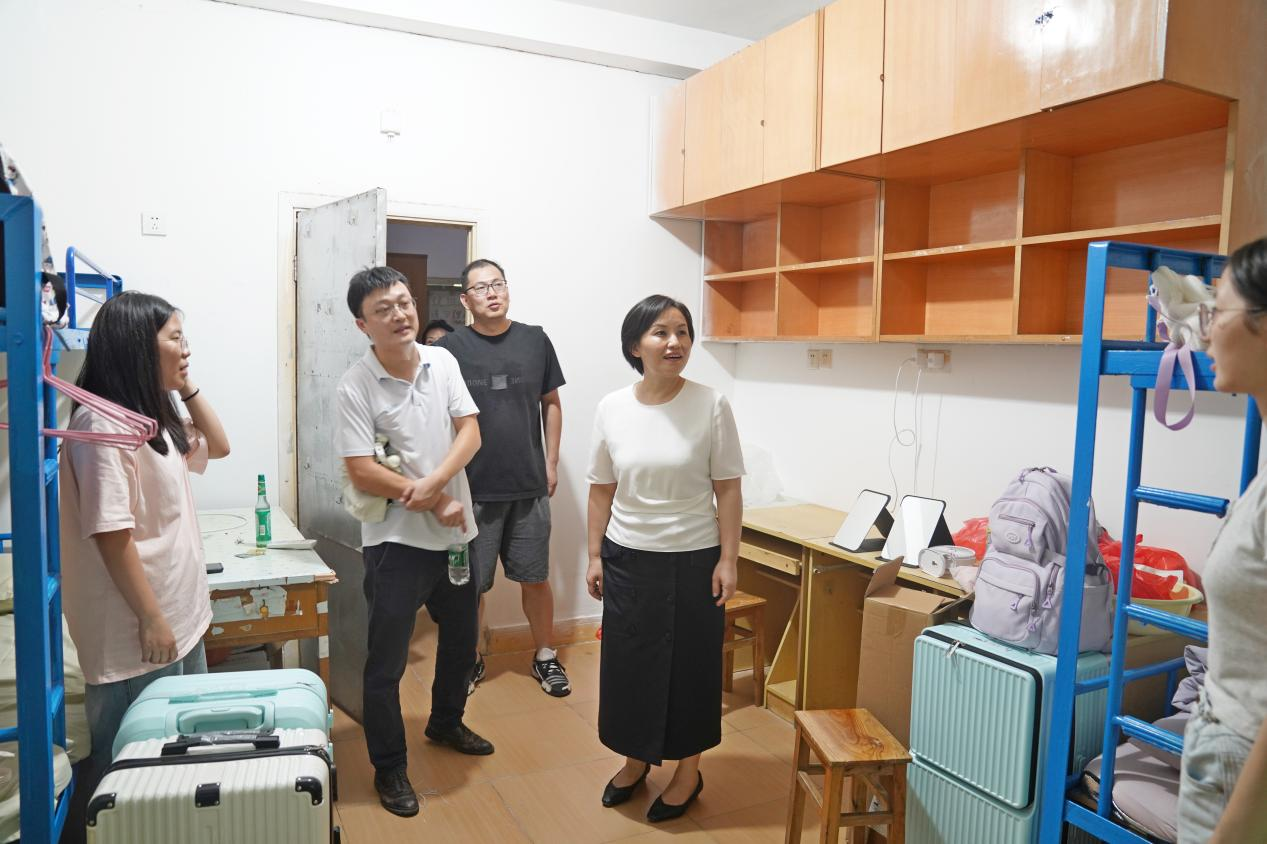 彭慧一行来到新生宿舍看望新生,与新生及学生家长亲切交谈,了解学生入住情况和学习生活需求,倾听学生入学感受和学习规划,并叮嘱同学们要认真完成好入学教育,保持日常身心健康,做好学业规划,尽快适应新的环境。彭慧表示,学校坚持围绕师生、关照师生、服务师生,将竭力为同学们做好服务,帮助解决学习和生活中的困难。