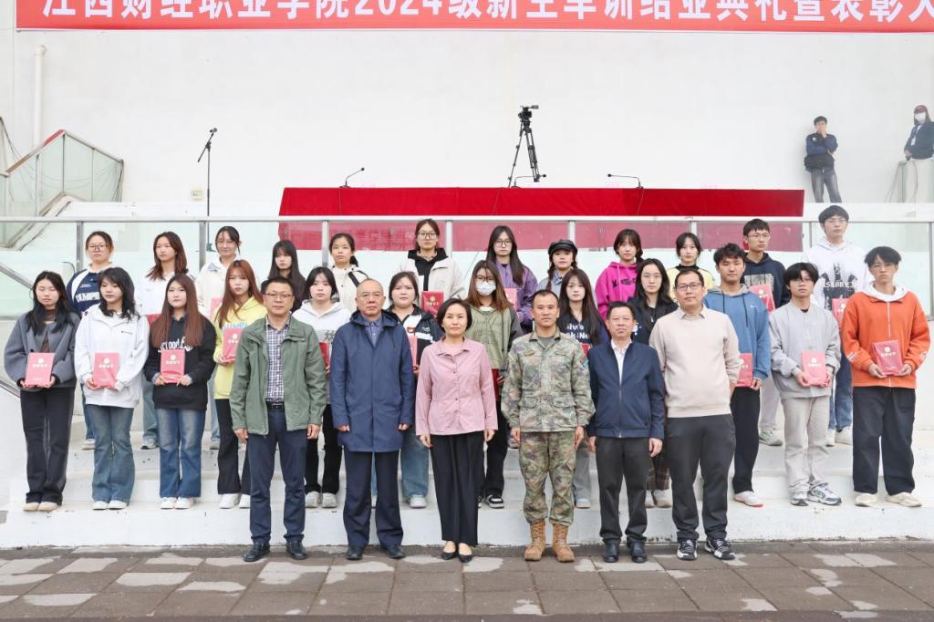 梁瑞向圆满完成军训任务的全体同学表示祝贺,同时宣布了本次军训的获奖方阵,与校领导一起为军训获奖队伍颁发了锦旗。