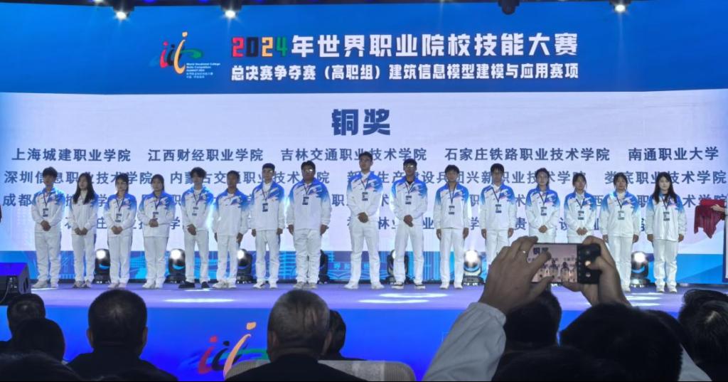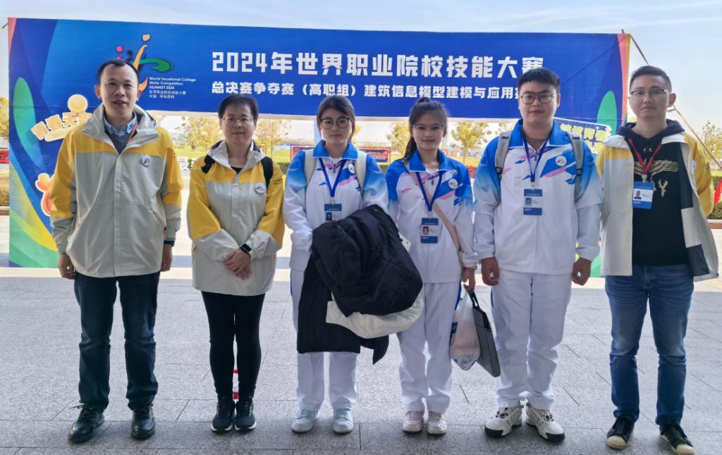 日前,2024年世界职业院校技能大赛总决赛争夺赛收官,由城乡建设学院蔡小萍、吴翠翠两位老师指导,辜聪、陈飞妃、张金丙、袁翔四位同学组成的代表队,参加了高职组土木建筑赛道(建设工程数字化计量与计价组)赛项,获得铜奖;由蔡小萍、张乐两位老师指导,夏秋香、肖子怡、黄子禛三位同学组成的代表队,参加了高职组土木建筑赛道(建筑信息模型建模与应用)赛项,获得铜奖。