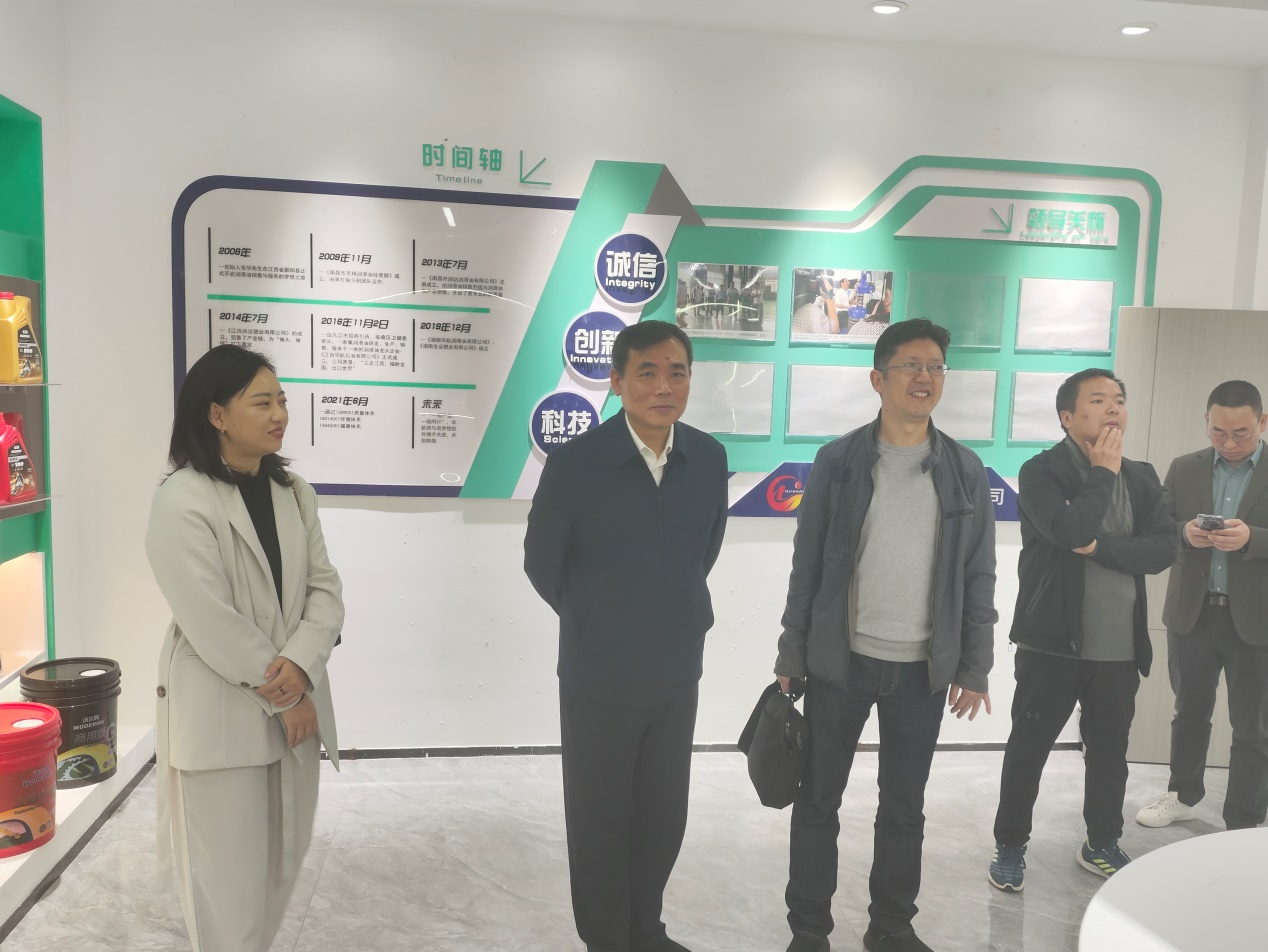 阙沪平一行先后走访调研了江西华玖科技有限公司、江西华航石油有限公司、江西昂达新材料有限公司和江西凡达建材有限公司,现场参观了企业工作环境,调研了企业发展历程、现状和前景,详细了解企业当前的生产经营状况、未来发展规划以及人才需求情况,并与企业负责人围绕校企合作、人才培养、实习就业进行了深入交流。
