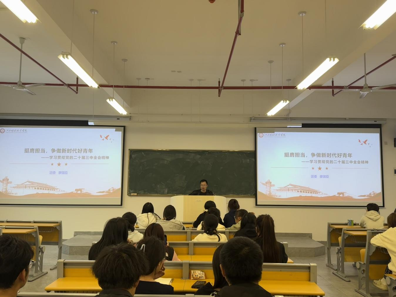以思想引领教育为主线,开展了《挺膺担当,争做新时代好青年——学习贯彻党的二十届三中全会精神》《自觉践行核心价值观,努力争当优秀大学生》两场专题宣讲,从“是什么”“为什么”“怎么做”三个方面,引领新生团支书们筑牢思想根基,坚定理想信念,敢于担当作为,争做优秀表率。