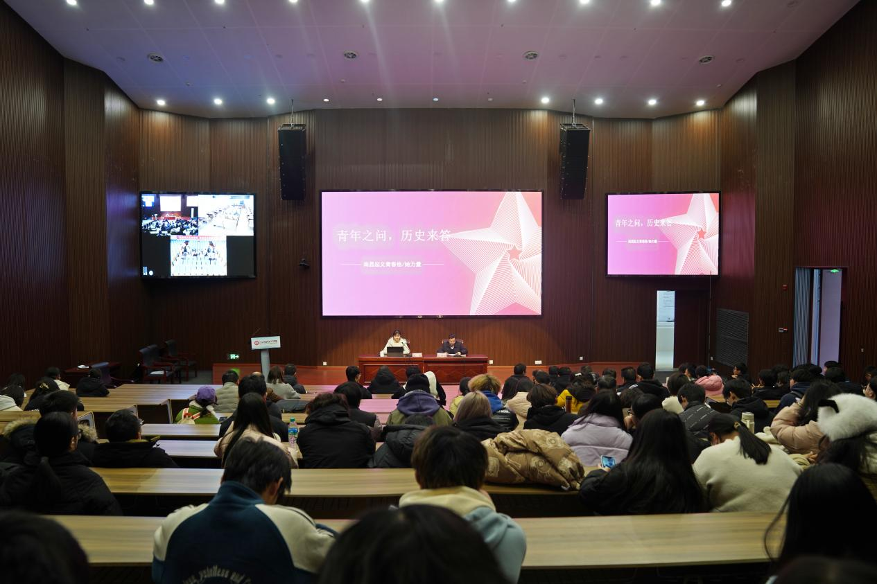 为传承红色基因、赓续红色血脉,12月16日,学校在八里湖校区行政楼二号报告厅举办了“中国共产党人精神谱系”宣讲报告会,特邀全国高校“中国共产党人精神谱系”宣讲团专家、南昌八一起义纪念馆宣教科科长周甜作题为“青年之问,历史来答——南昌起义青春他/她力量”的主题宣讲。校党委委员、副校长邱家明出席并主持,师生代表200余人参加宣讲报告会。