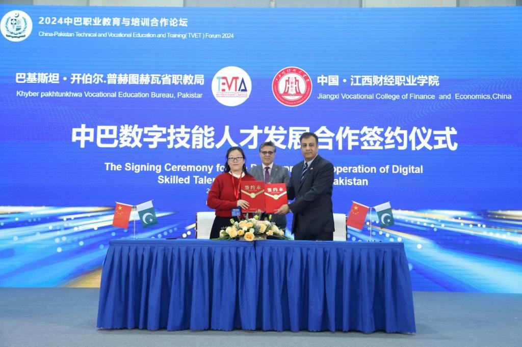论坛上,beat365官网和开伯尔-普赫图赫瓦省政府技术教育与职业培训局签署项目合作协议,双方将聚焦金融服务与管理、金融科技应用、会计科技、数字营销以及信息技术等专业领域,共建数字技术产业学院,打造网络教学空间,共同建设数字化教学资源,分期开展数字化技能培训与测试、人员交流与互访、学历教育认证等合作。