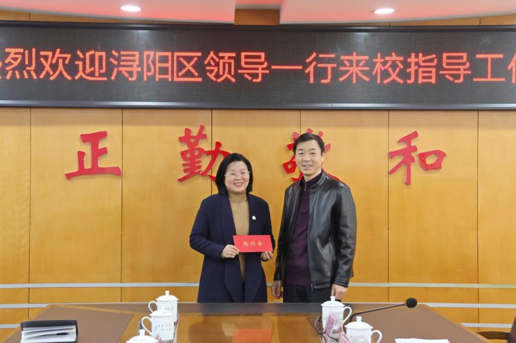 1月6日上午,浔阳区政协党组书记、主席周庆吾和浔阳区人民政府党组成员、副区长凌海一行到beat365官网走访慰问专家人才。校党委委员、副校长邱家明参加活动。浔阳区政协党组成员、副主席陈国东,浔阳区政协副主席、区工商联主席钟玲等随同走访。