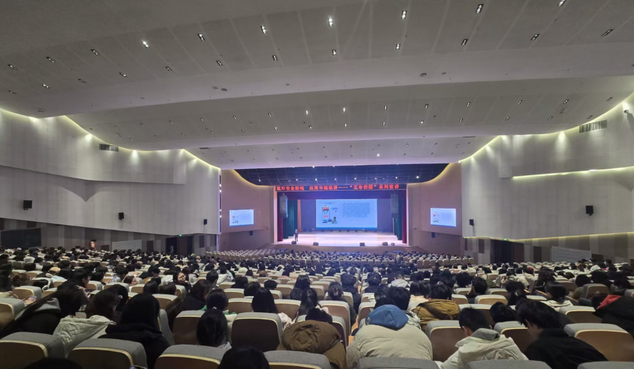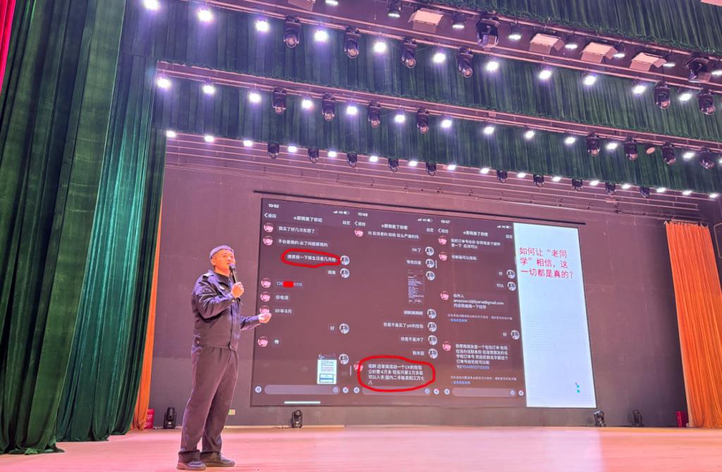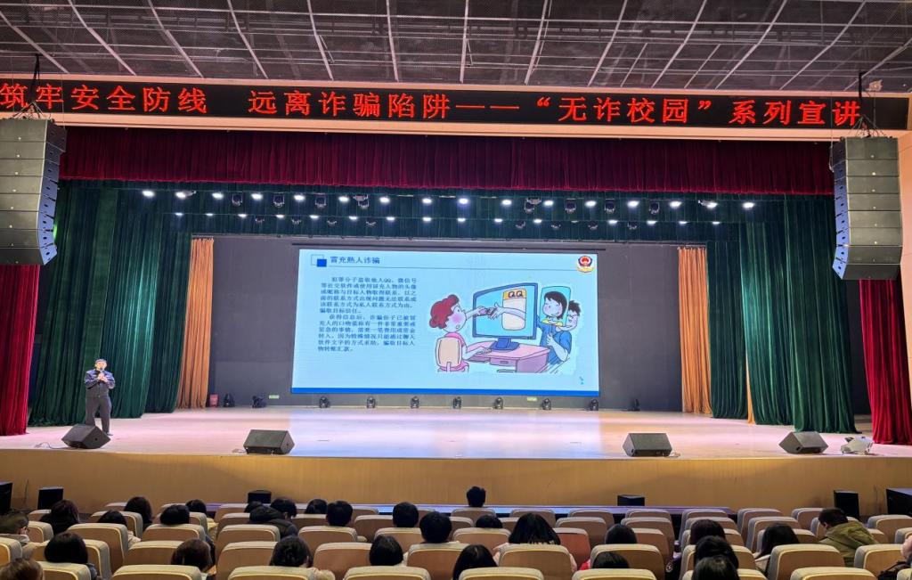 陈警官结合近年来发生在校园内的典型诈骗案例,深入剖析了诈骗分子的作案手段和特点,提醒师生们在日常生活中提高警惕,防范各类诈骗。