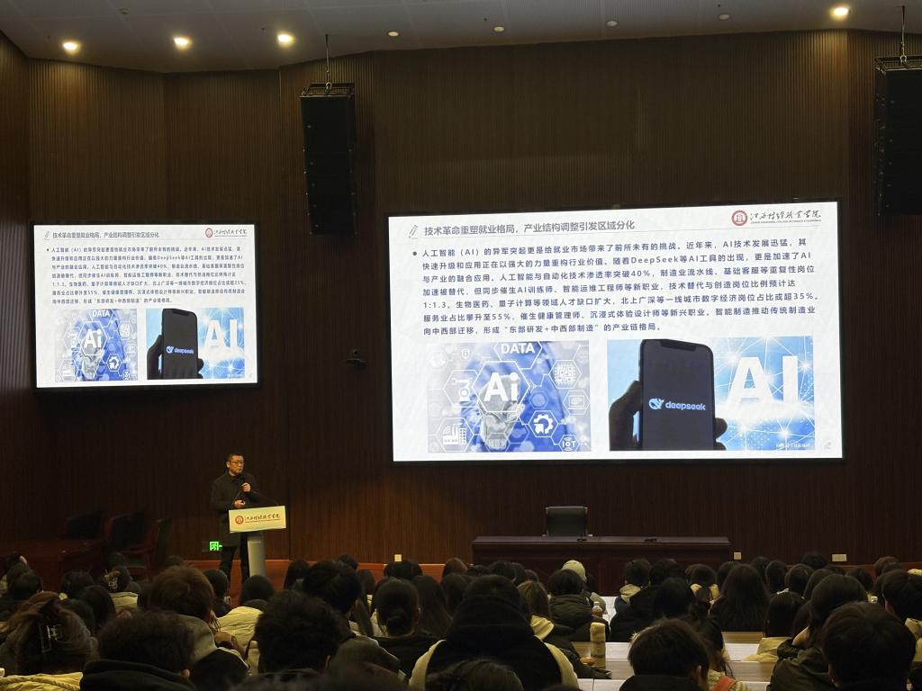为深入贯彻党中央、国务院决策部署,推动落实毕业生就业工作“一把手工程”,提升毕业生就业竞争力和就业质量,3月11日下午,校党委委员刘锋在八里湖校区行政楼二号报告厅,为城乡建设学院、数字经济学院、信息工程学院学生作“开学就业第一课”主题报告。