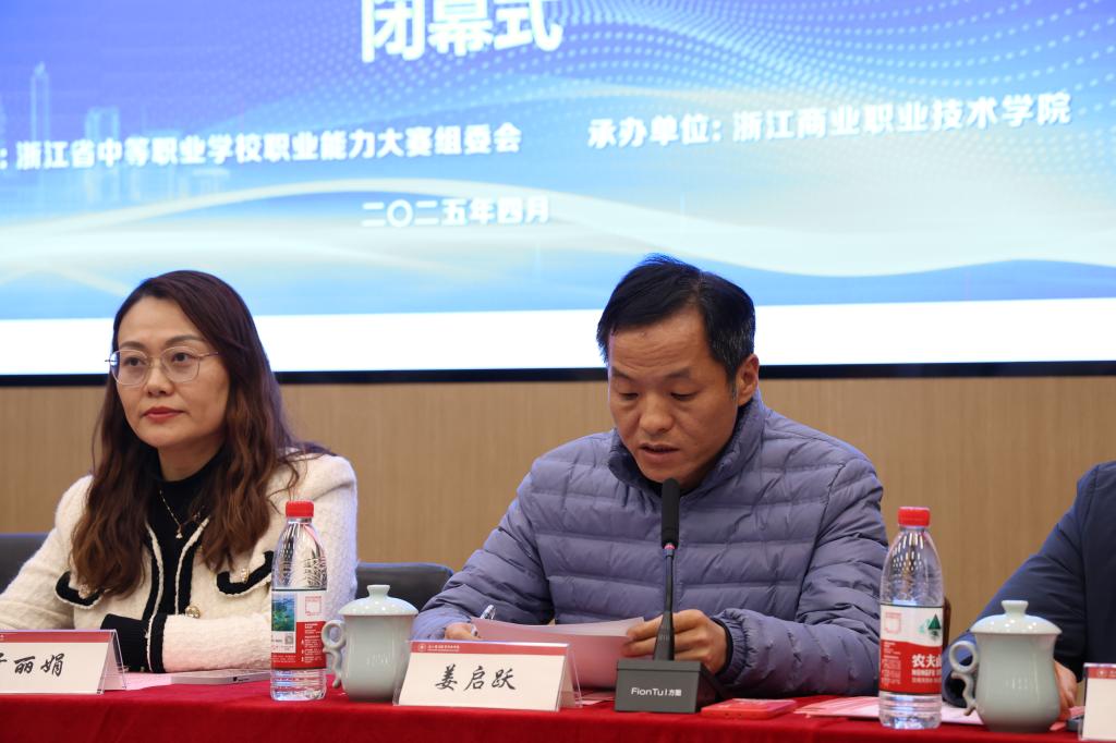 2025年4月1-2日,浙江省中等职业学校职业能力大赛“企业经营沙盘模拟赛项”在浙江商业职业技术学院举行,该赛项由浙江省教育厅主办、浙江商业职业技术学院承办、新道科技股份有限公司协办。本次大赛共有来自浙江省20支队伍80名选手同场竞技,beat365官网现代服务学院(本科部)负责人姜启跃应组委会邀请担任赛项裁判长,并对赛项进行点评总结。