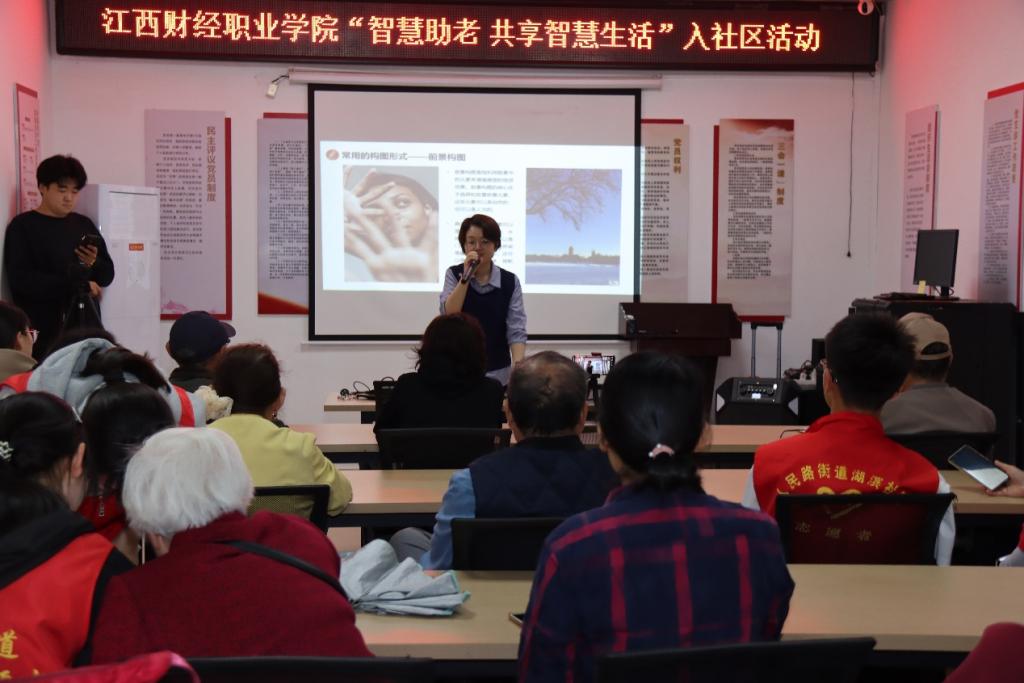 活动于下午3:00开始,校工会副主席陈洁以“拍出好生活—老年人手机摄影入门”为题,从认识手机设置、基础摄影技巧、手机视频拍摄、手机照片和视频的简单编辑等四个方面进行了详细讲解,并安排了15名青年志愿者在现场手把手辅助社区老年人在手机上进行实际操作。通过深入浅出地讲解,使参加培训的社区老年人受益良多,他们纷纷表示“这次培训使老年人更加全面地了解了手机的摄影功能和技巧,对于我们记录美好生活,融入智慧社会提供了极大地帮助”。