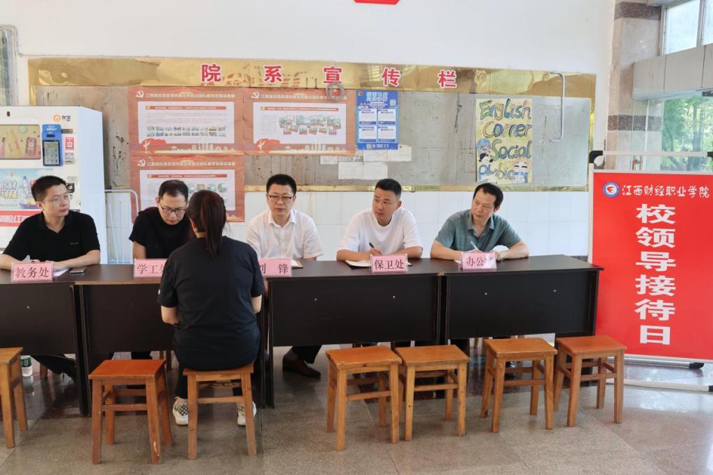 6月4日,党委委员刘锋在浔阳校区教学楼一楼大厅开展“校领导接待日”活动。党政办、后勤处、学工处、教务处、保卫处等相关部门负责人参与。
