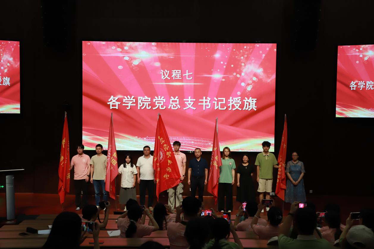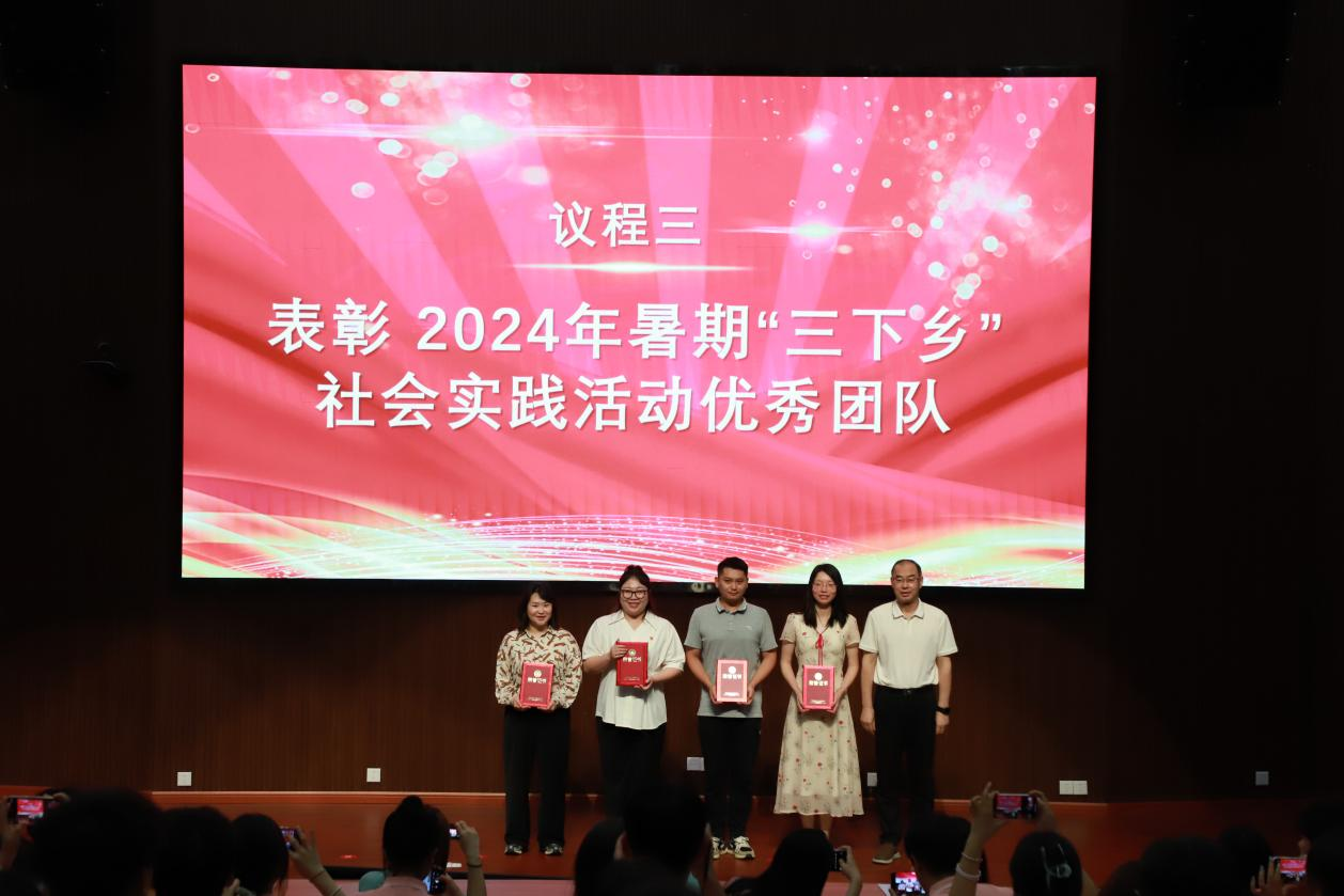 出征仪式上,金小军为获得2024年暑期社会实践省级优秀团队颁奖,各党总支负责人为2025年暑期社会实践活动各团队授旗,教师代表熊凯、学生代表淦方宇分别发言,并播放了2024年暑期社会实践活动纪录片。