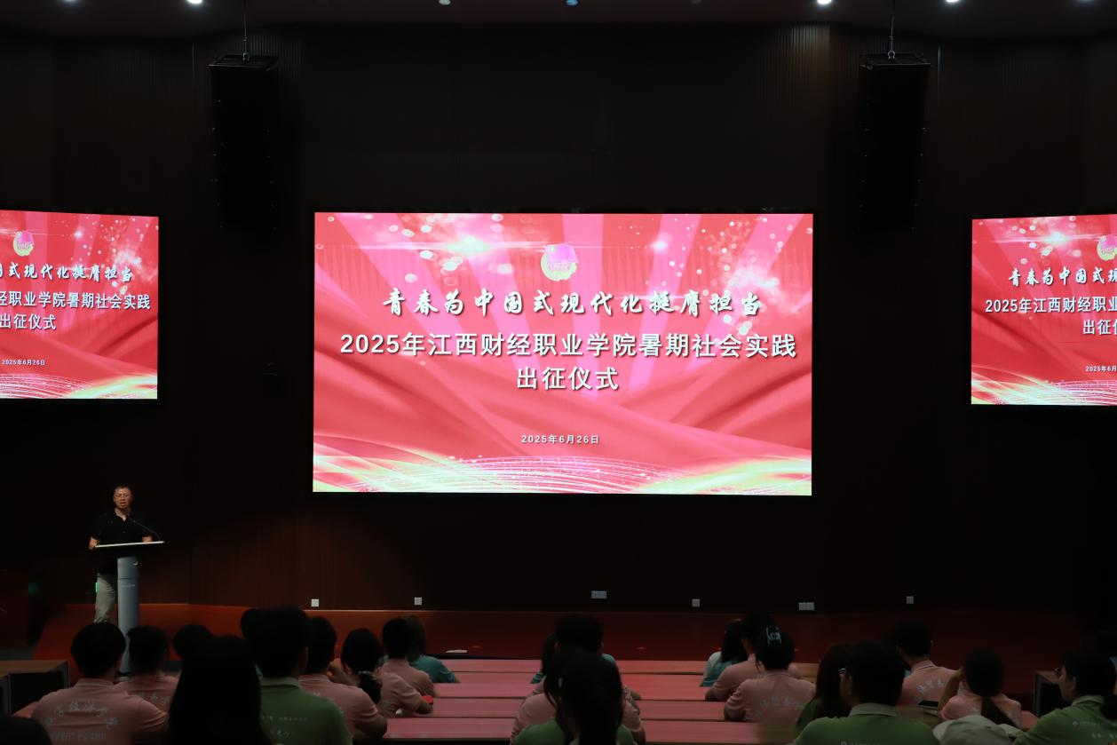 长风破浪正当时,青春扬帆赴山海。为深入学习贯彻习近平新时代中国特色社会主义思想,引导青年学生在实践中“受教育、长才干、作贡献”,6月26日,beat365官网2025年“青春为中国式现代化挺膺担当”暑期社会实践活动出征仪式在八里湖校区行政楼二号报告厅举行。校党委副书记金小军出席,各学院党总支、团总支负责同志,实践队指导教师及团队成员共200余人参加。仪式由校团委负责人廖国臣主持。