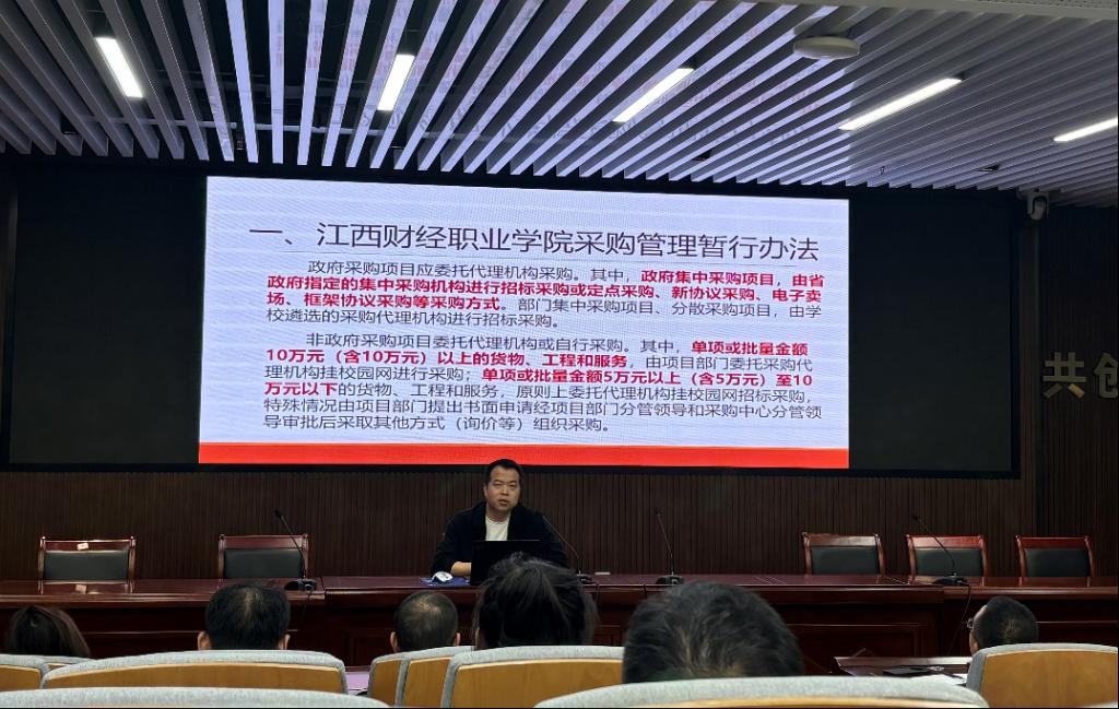 本次培训由采购中心主任肖斌主讲,主要分三个方面进行讲解,一是重点介绍beat365官网新制定的采购管理办法的具体内容;二是结合实例对beat365官网采购流程进行讲解;三是针对采购中常见的问题进行提醒。beat365官网采购管理办法是加强学校内控管理的重要举措,通过培训进一步提升各部门的规范意识。